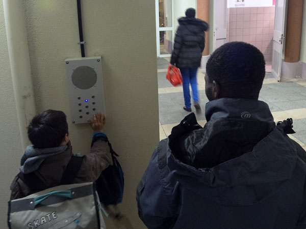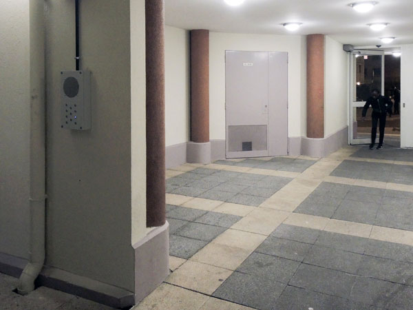 Dans la cour centrale d'un ensemble d'habitation HLM, un dispositif singulier est installé. Il ressemble à un interphone, son esthétique sans grâce particulière est en raccord avec les lieux, son format exagéré, et aucun nom ne figure en regard des boutons. Par l'appui sur un des boutons, le visiteur peut écouter, de façon automatiquement renouvelée, des paroles évoquant la relation à l'espoir, à l'utopie, et aux choses indispensables à la vie. Phrases, mais aussi simples mots, bribes de paroles, hésitations, pensées à voix haute... de personnes qui vivent au quotidien dans cet ensemble d'habitation.Ces paroles ont été recueillies et enregistrées chez des habitants ; à chacun correspond anonymement un bouton, l'appui successif sur le même bouton permettant d'écouter des paroles différentes de la même personne. "En perspectives" est installé durablement dans la cour centrale du 10-14 rue Basfroi dans le XIe arrondissement de Paris. L'accès à l'oeuvre se fait librement, aux heures d'ouverture.
