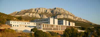 Un premier corps de bâtiment parallèle à la pente fait front le long de l'espace public et abrite les fonctions communes et administratives. Sa façade originale exprime, par ces éléments brise-soleil verticaux sur une double hauteur pris entre un soubassement en retrait et un auvent linéaire, son caractère public. Perpendiculaires à ce bâtiment, deux barres de deux niveaux abritent les modules de recherche et permettent d'intégrer le bâtiment existant, dédié à la formation, dans l'extension. Un dernier élément en retrait, parallèle à la pente et partiellement encastré dans le terrain, sert de second appui aux modules de recherche et accueille les laboratoires d'expérimentation. Afin de s'inscrire dans le site tout en le préservant, le traitement des toitures a fait l'objet d'un travail particulier. Notre objectif est l'élaboration d'un bâtiment à l'expression méditérranéenne actuelle, sobre et intemporelle, dont les qualités fonctionnelles, environnementales sont l'assurance de lieux de travail conviviaux.