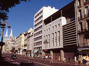 "Au milieux du XIXe siècle, à l'emplacement exact de notre projet, Mollaret édifiait le Palais de Crystal, plusieurs fois détruit et reconstruit, annonciateur d'autres salles de Cinéma ou de spectacle qui investirent le coeur d'îlot. Le squelette retrouvé du Palais de Crystal, support constitutif de l'îlot, est devenu support à la mise en place du nouvel édifice, axe de composition autour duquel il va s'inscrire et s'établir. Le jardin-galerie, largement ouvert au Sud, est la trace des jardins du passé, jardin secret entrevu depuis la Canebière, Forum ou Agora, lieux déclamant la pratique méditerranéenne de l'espace public. Le grand amphithéâtre témoigne de l'existence ancienne, à cet endroit précis, de salles de spectacles avec orchestre et promenoir en même temps qu'il annonce la pratique des cours ex-cathédra. Notre travail a donc consisté à s'appuyer sur l'Histoire de l'existant, à le révéler dans sa rationalité constructive, à le transcender pour livrer un bâtiment sain sous tous rapports, aux stratifications clairement définies. L'ouvrir sur une Canebière devenue espace de Citoyenneté ou de Civilité, constituer un vrai lieu de vie et d'éducation pour les étudiants et leurs professeurs, telle fut notre ambition."