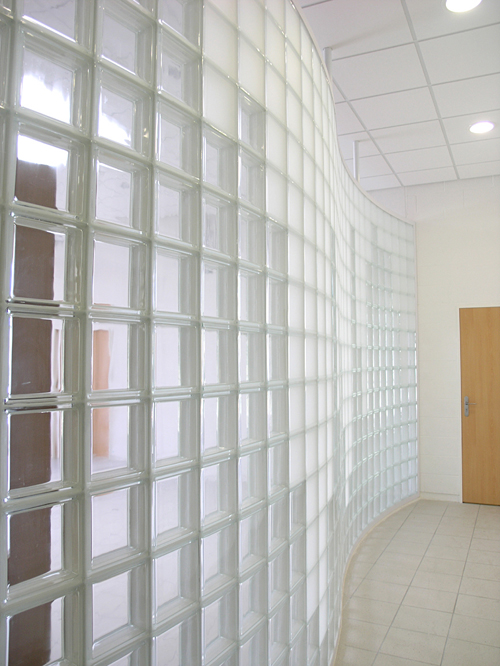 Pavés de verres transparents et lisses et d'autres blancs et opaques. Dimensions: 320 x 580 cm |