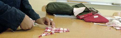 Toutes les formations proposées dans les ateliers du lycée professionnel portent sur différentes formes de soin : soin du corps, soin du linge ou de l'étoffe, soin à l'organisation des choses où soin des espaces . Ainsi "prendre soin" est devenu le titre de l'oeuvre et les images prises lors des cours ont pris place sur les murs d'un transformateur EDF. Ce bâtiment en béton moulé et laissé brut communique par sa façade avec une avenue passante et par son corps avec quelques uns des bâtiments du lycée.