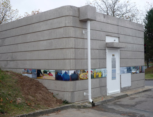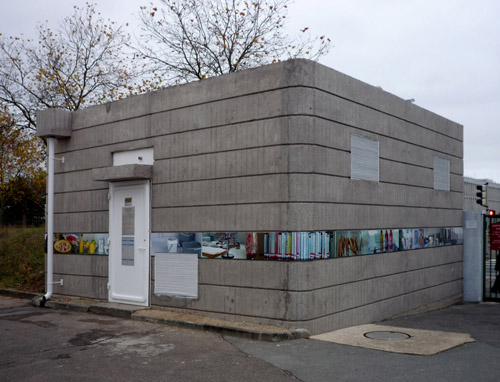 L'article IV du cahier de charge portait sur le souhait du lycée de faire ressortir son identité par un signal visuel. Aucun bâtiment du lycée ne communiquant avec la rue, le transformateur pouvait jouer ce rôle visuel. Pour la partie située dans l'enceinte du lycée, les images sont fixées à "portée de main", tels des tiroirs ouverts montrant des outils de travail ou d'apprentissage. Du côté rue la fresque est en hauteur, offrant une plus grande visibilité aux automobilistes et une protection des images dans la partie publique.