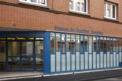 Hall d'accueil de la maison de quartier et façade, photographies E. Watteau