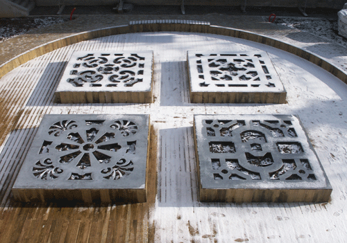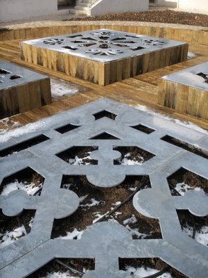 Score for Constraints, four cut-out galvanic metal sheets on planters, plantseach planter : 300 x 300 x 60 cm, 2011