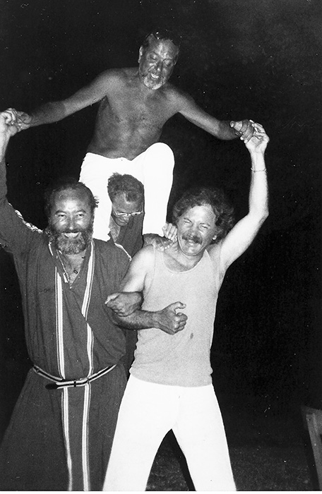 Sarenco, Julien Blaine et Eugenio Miccini sur nos épaules en 1983.